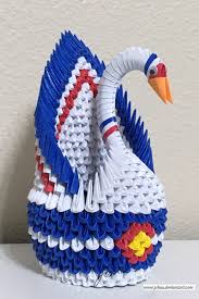 This 3D origami swan consists of many small triangular units.